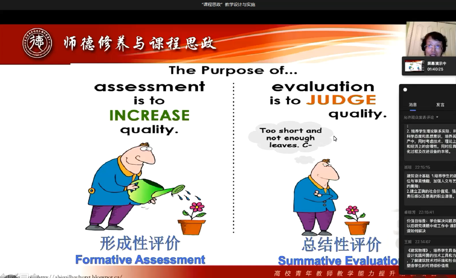 李教授在2个小时的讲座过程中,引经据典,结合了丰富的实践案例,从“课程思政”建设的背景意义入手,深入浅出地讲解了课程思政资源挖掘的策略,以及如何有效提升课程思政教学设计的有效性,同时,还积极引导老师们反思如何能提升课程思政的意识和能力。