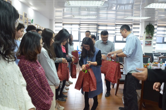 最后,学院教师代表为参会的学生代表赠送新年礼物,学院领导为参与的教师代表赠送礼品并合影留念。