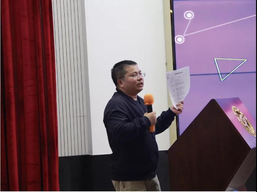 环建学院副院长邱永福老师发表自己挑战杯团队的看法与建议,讲述参赛做品的内涵应依着“为人民服务”为出发点的根本理念,并且要尊重客观事实,注重关注其实用性,解决实际问题。