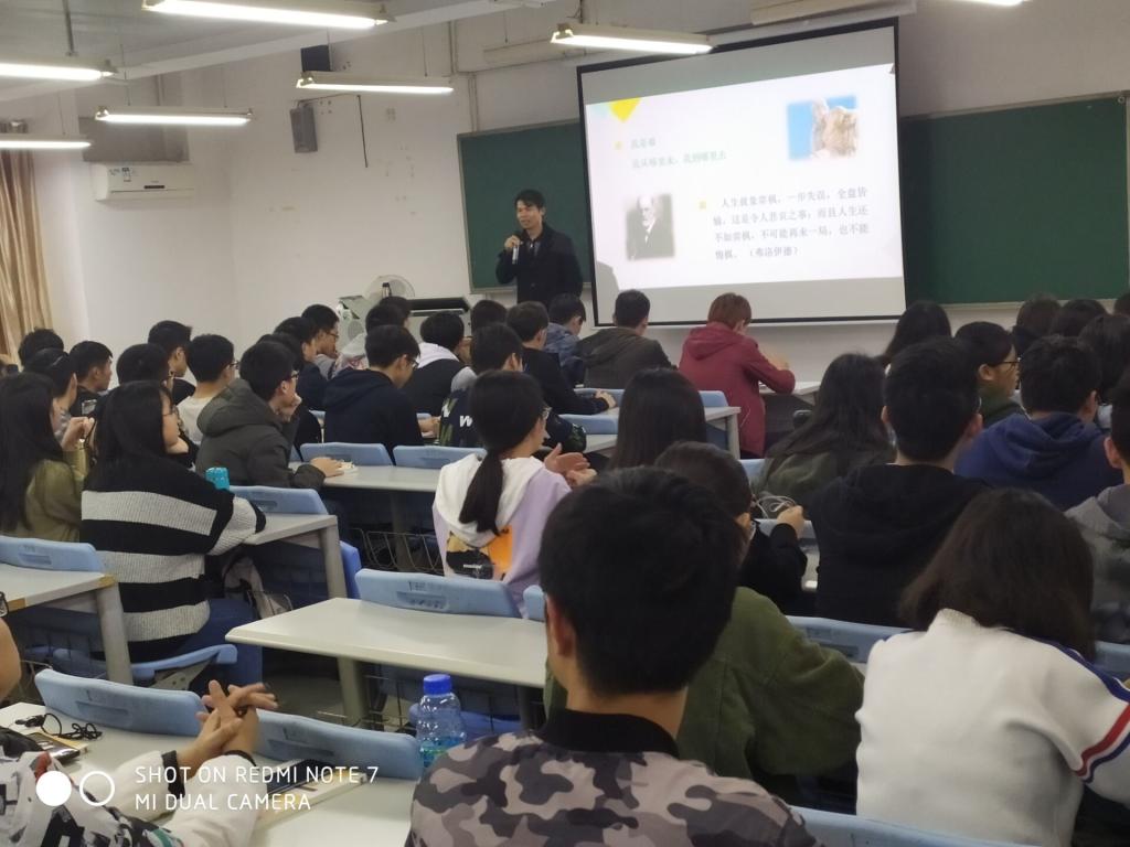 在思修课堂上,李纠书记主要阐述了青年时期树立科学人生观的重要性。人生观决定着人生道路的方向,也决定着人们行为选择的价值取向,青年的价值取向又决定着未来整个社会的价值取向,青年大学生正处在三观形成和确立时期,所以人生的扣子从一开始就要扣好。他接着以“规划人生”为主题,并结合自己的人生经历指出:人生漫长,及时规划,成就不一样的自己。他希望同学们多读书,不断丰富人生阅历,增长见识,在纷繁复杂的社会现象面前做出正确的抉择,同时鼓励大家努力学习好数学与英语等科目,或争取去名校就读研究生,或成为一名公务员,更好地服务社会。