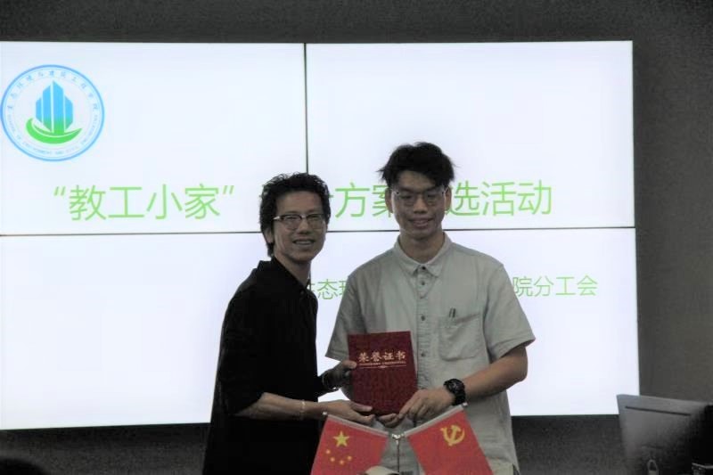 会上,三位参赛学生分别展示了他们的设计方案,对“教工小家”设计的想法。随后,郑汉江对参赛学生的设计作品进行了点评,肯定了参赛学生作品的设计亮点,并提出了修改建议。
