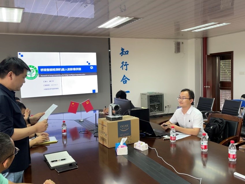 谢仁平博士首先做了题为“桥梁智能检测机器人的影像拼接”的主题报告。报告针对影像拼接中影像配准和颜色一致性处理这两个重要环节进行介绍,提出了一种利用分组分条带的逐步优化策略,联合影像点特征与桥梁结构线特征的配准方法。此外报告还介绍了一种基于初始解约束的全局优化影像匀光匀色处理方法,来改善拼接影像颜色的一致性。获得的全局一致(即无明显透视畸变)且颜色均匀的桥梁底部拼接全景图,为桥梁病害的高效检测与三维可视化展示提供了基础。