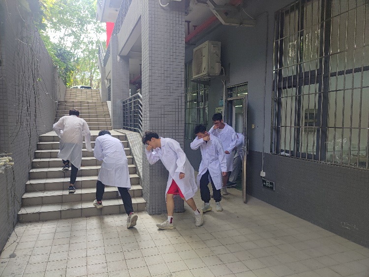 同样的,学院在5月13日在12K102为本科生开展一次防灾减灾应急演练,模拟上课期间突发地震情况。