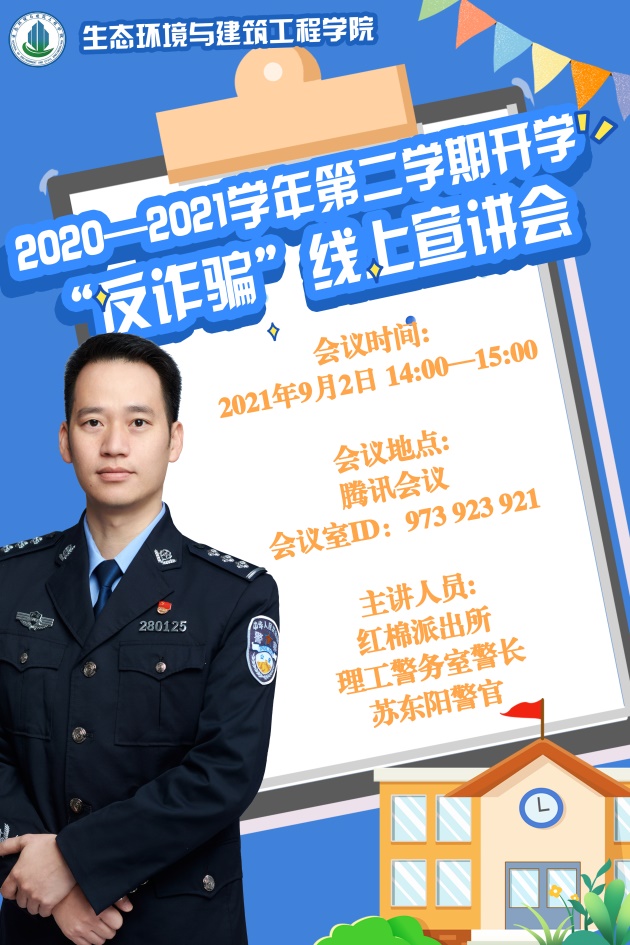 随着科技发展,各种诈骗手段层出不穷,接踵而来。为提高广大学生对诈骗的防范意识,保护同学们的财产安全,yl23455永利集团于9月2日14:00召开新学期开学“反诈骗”线上宣讲会。学院邀请红棉派出所理工警务室警长苏东阳警官为广大学生讲授有关防诈骗知识,提升学生们的防诈骗能力。
