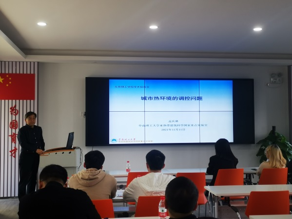 11月11日下午,华南理工大学孟庆林教授在12G401为环建师生做了“城市热环境的调控问题”的学术报告,介绍了城市热环境问题的成因,研究思路和研究方法,着重介绍了华南理工大学在城市热环境问题领域的研究进展,并分享了在建筑节能领域的研究心得,对我院青年教师从事科研工作提供了有益的指导。