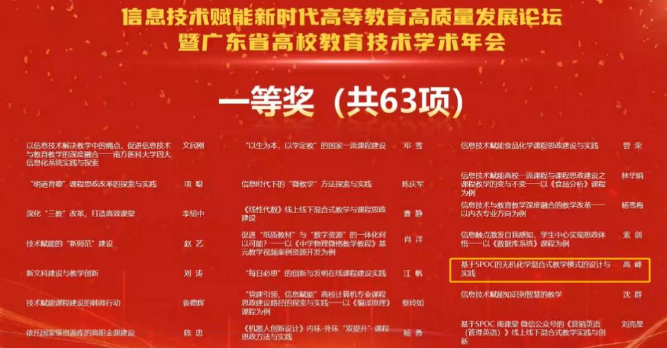 yl23455永利集团孙璨、高峰两位老师受邀分别在经管法分会场、理工分会场做了题为“混合式学习环境中以学习分析为纽带构建线上学习共同体促进学生深度学习”、“基于SPOC的无机化学混合式教学模式的设计与实践”的专题报告,充分展现了我校在混合式教学研究改革中的优秀成果及宝贵经验,受到与会专家和参会人员的广泛关注和好评。同时,两人均代表我校获得由广东省本科高校在线开放课程指导委员会评选出的“教学改革创新优秀案例”一等奖。