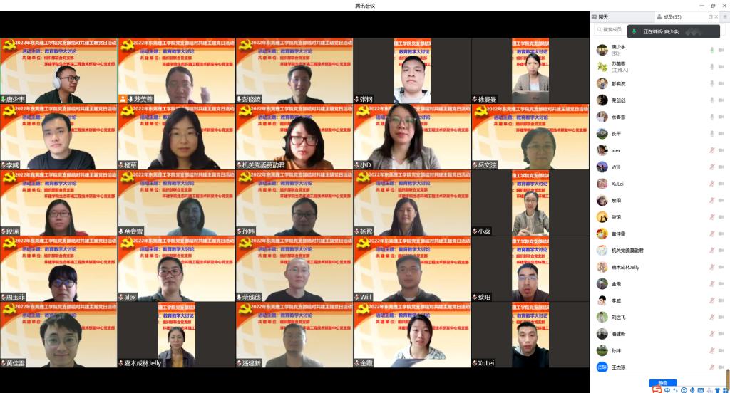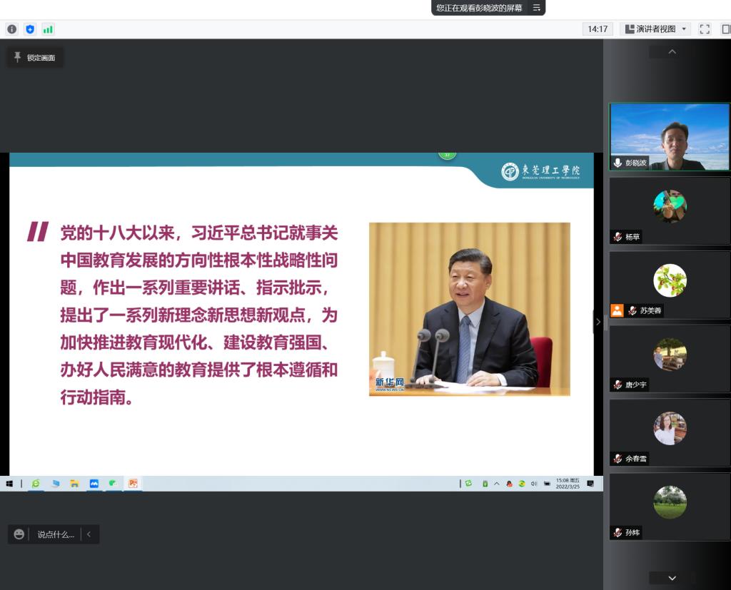 为深入学习贯彻习近平总书记关于教育的重要论述和系列重要讲话精神,贯彻落实学校《永利y23455深化课程思政建设实施方案》、《关于开展“深化课堂教学改革 提升课程育人质量”教育教学大讨论的通知》精神,提高人才培养质量,3月25日,生态中心(以下简称“中心”)党支部通过与党委组织部联合党支部结对共建,在腾讯会议平台组织了主题为“研究生培养的思政探讨——春风化雨”的线上主题党日活动。本次活动由党委组织部联合党支部书记彭晓波同志主持,共分为四个部分:一是“第一议题”学习;二是党委组织部联合党支部谈对教育教学大讨论的理解和对中心党支部的希望;三是中心党支部结合工作实际,谈对研究生培养思政工作的理解;四是会议总结。中心22名党员和3名拟发展人员以及党委组织部联合党支部10名党员到会参加。