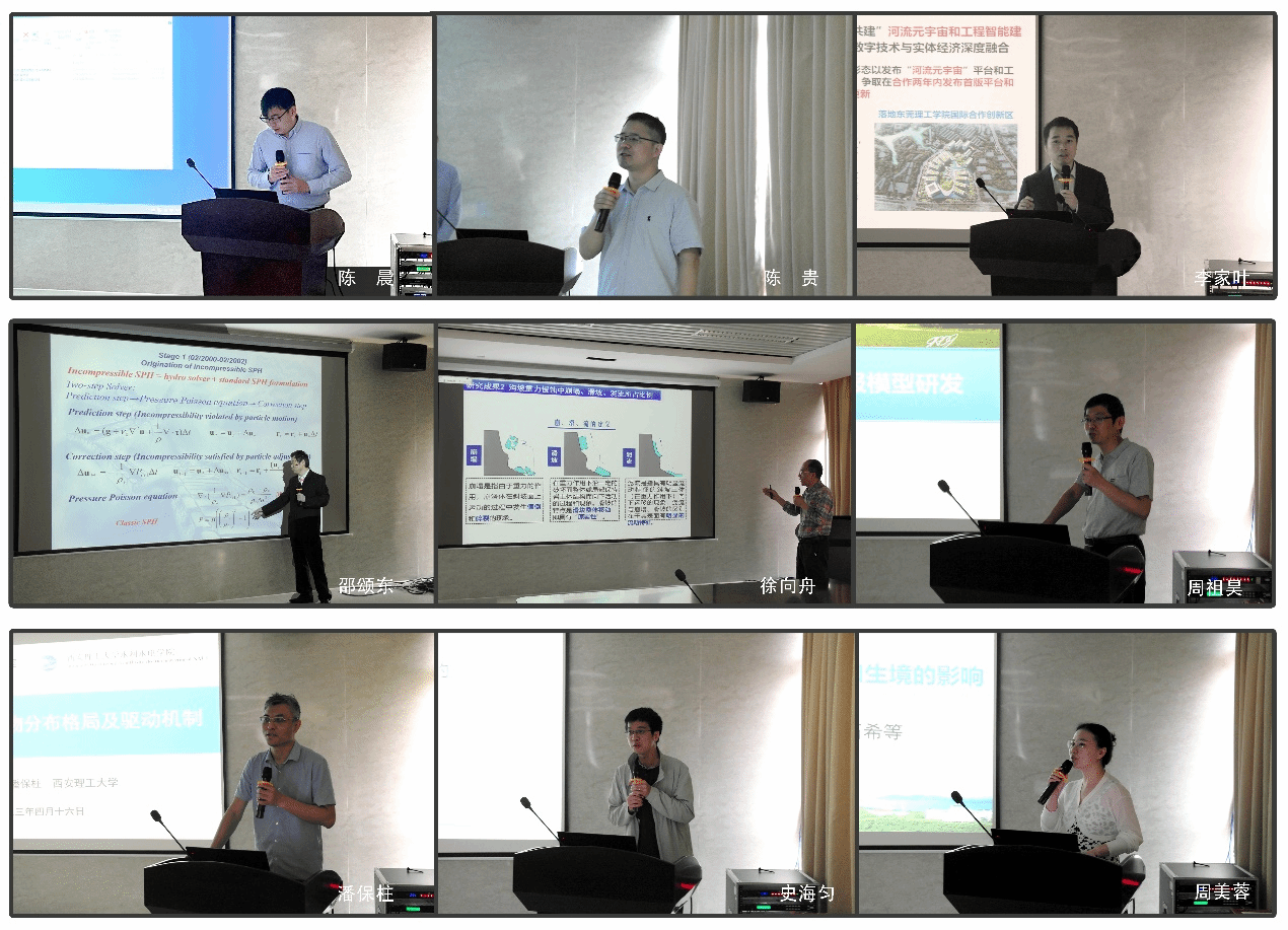 首先,陈贵教授代表学校和学院向各位专家表示欢迎。其次,工程软件重点实验室李家叶老师详细介绍了实验室的预期目标、发展现状、工作成果等基本信息。然后,各高校专家做学术报告。邵颂东教授就无网格粒子法SPH模拟技术及其在工程领域的潜在应用向大家做报告。徐向舟教授就黄土高原沟坡重力侵蚀机理研究做报告,讲述了重力侵蚀机理研究的意义和进展、沟坡重力侵蚀的观测方法、黄土沟坡重力侵蚀机理等内容。周祖昊教高就智慧化流域产汇流及洪水预报模型研发做报告,介绍了分布式水文模型、基于人工智能算法和高性能集群的实时并行计算模型、洪水预报模型等研究内容。潘保柱教授就黄河流域水生生物分布格局及驱动机制做报告,通过构建评价模型评估了多沙河流生态系统稳定性并且明确了关键影响因子。史海匀副教授报告使用线性模型和非线性模型拟合干旱传播特征,并基于相对更优的模型模拟出全域的干旱响应时间。武汉大学周美蓉副研究员就长江中游河床演变及其对防洪和生境的影响做报告,讲述了长江中游水沙变化及河床冲淤以及长江中游生境变化及模拟等研究内容。与会专家学者就学术报告内容进行了充分的交流讨论。