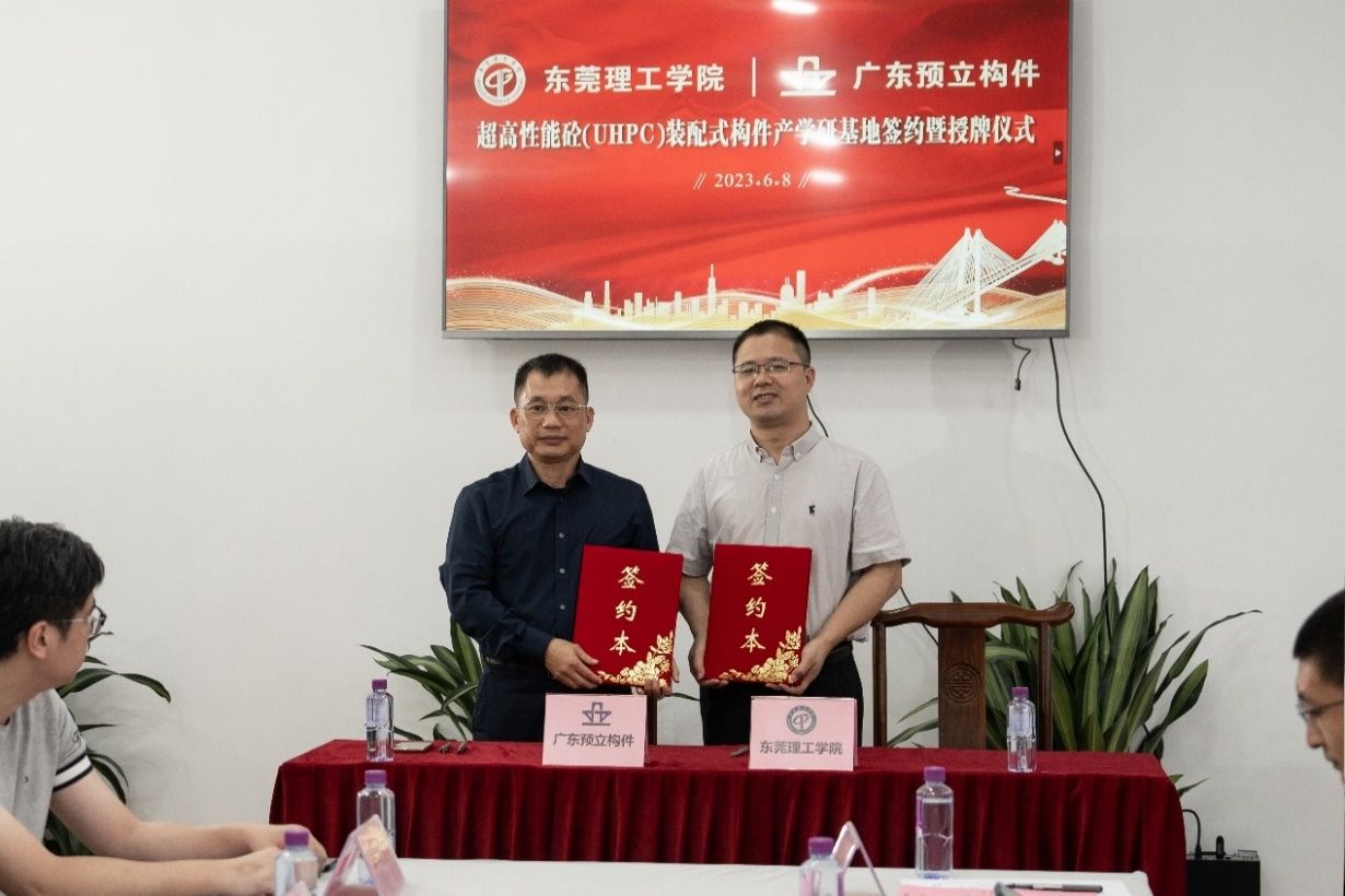 广东预立预制构件有限公司在桥梁预制以及桥梁工程施工等方面有用先进的研发设计水平和生产能力、一流的机械化施工能力及专业的工程施工团队,是一家具有探索思维、开拓创新的企业。近些年专注技术研发,将土木工程新型材料UHPC与企业优势桥梁预应力技术结合,开发了新型装配集成房屋。经过前期与预立的良好沟通,双方形成了基于UHPC预制房屋技术开发的委托合作,确定了高性能混凝土(UHPC)装配式构件产学研基地。双方通过进一步深度合作、推动优势互补、深化产业互融,共同推动装配式集成建筑发展。