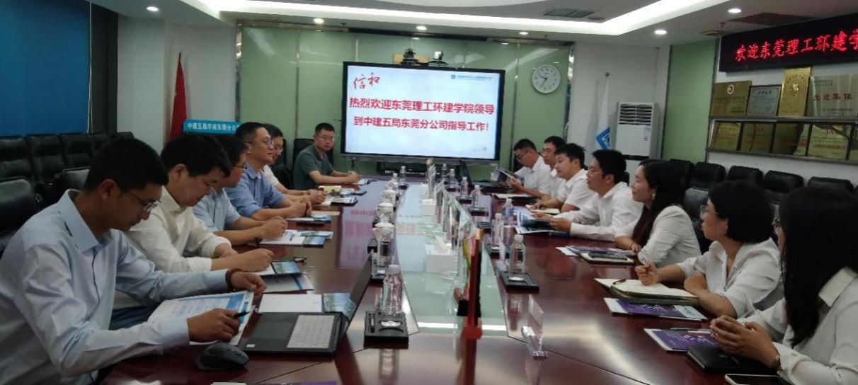 随后,郑愚院长就学校专业学科发展情况进行了介绍,阐述了学校在培养高素质应用型创新人才方面的举措。他表示,学校与中建五局东莞分公司始终保持着良好的合作关系,希望双方今后能够继续在课题研究及人才培养等多方面进行深入交流,共同探索新形势下“产学研”校企合作新模式。