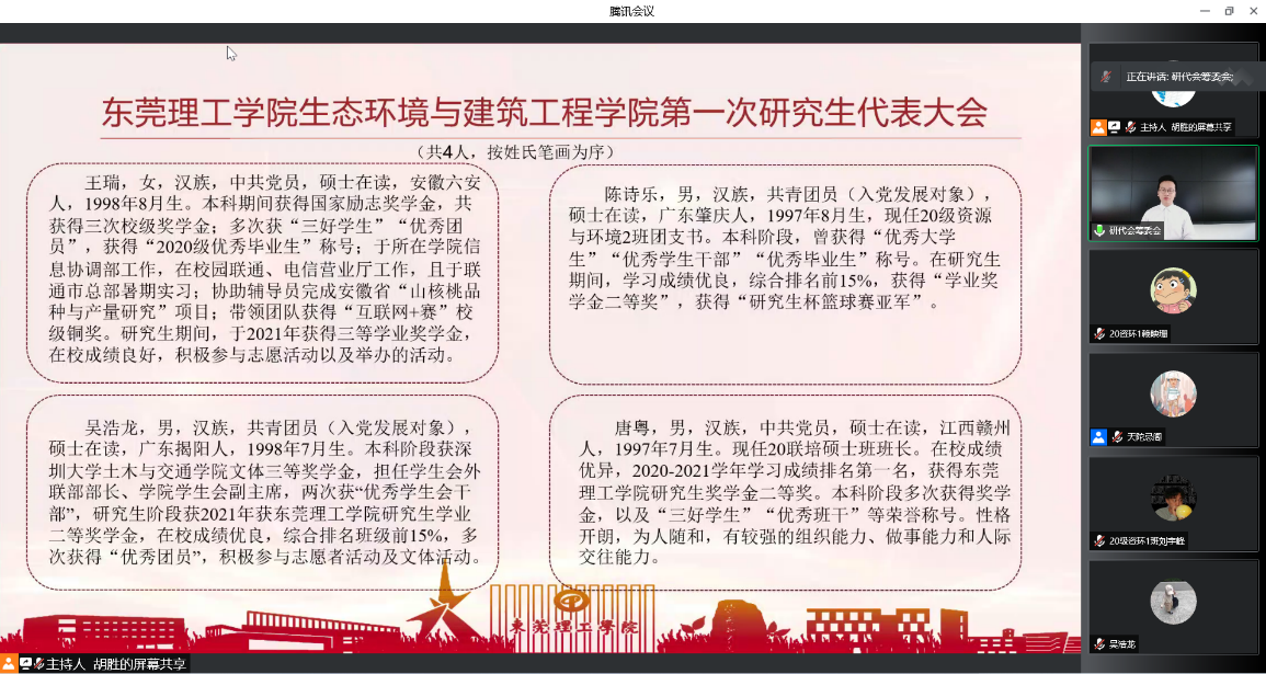 永利y23455研究生会主席郭衍杰同学宣读了校研究生会《关于同意召开环建学院第一次研究生代表大会的批复》。