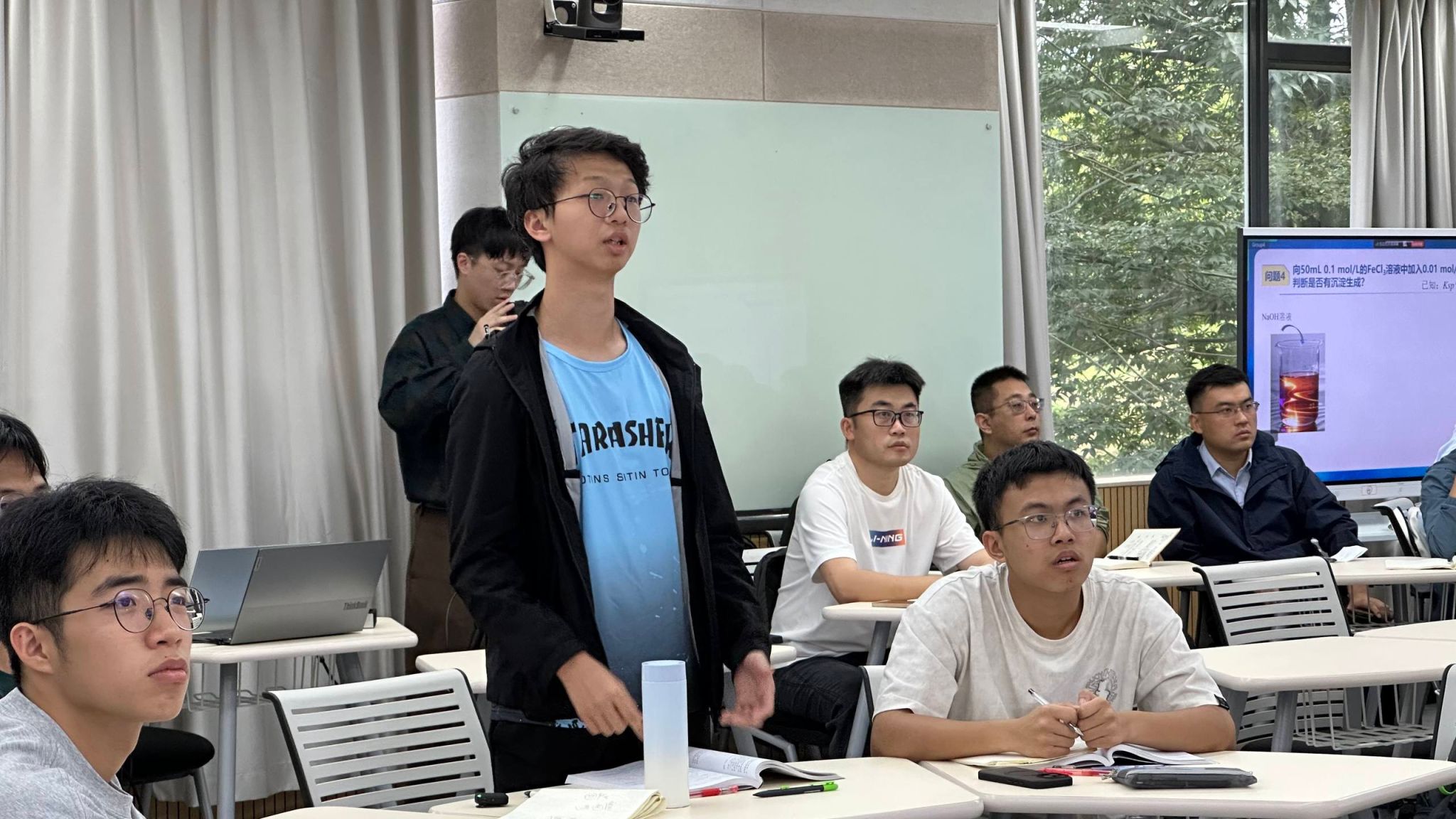 课堂上,高峰老师首先带领学生回顾了基础知识,并针对重点难点进行深入讲解。随后,通过“问题驱动”的方式引领和组织小组讨论,充分调动学生积极性。同学们踊跃发言,在教师启发下提出新问题,展现出活跃的思维能力和创新意识。课堂氛围热烈,不仅有效巩固了专业知识,更培养了学生的科学思维与探索精神。高峰老师在教学过程中注重理论联系实际,引入学科经典成果与前沿动态,强调科研工作中严谨求真的态度,并通过“实践是检验真理的唯一标准”等思政元素,引导学生树立正确的科学观和价值观。课程还结合我国新能源汽车产业的发展现状与电池回收等技术挑战,激发学生的专业使命感与解决问题的动力。