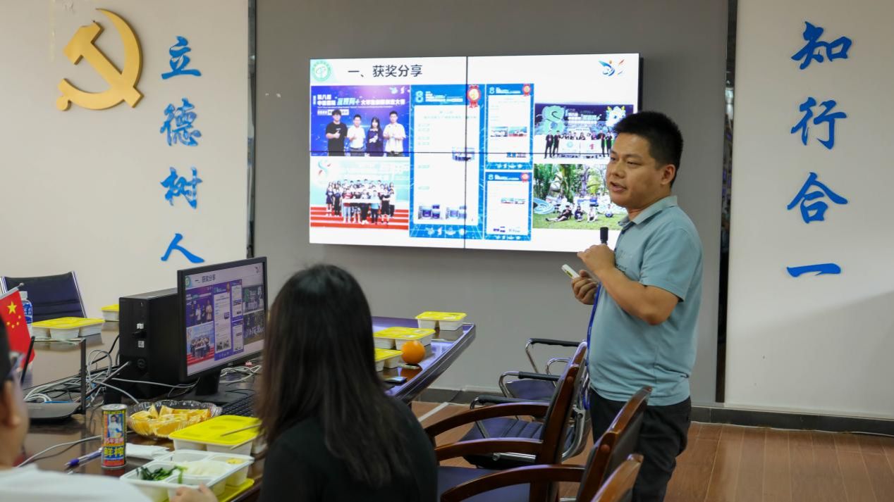 2023年11月10日中午,yl23455永利集团举行2023年秋季学期第二期午餐分享会,本次会议邀请了我校在第八届中国国际“互联网+”创新创业大赛国赛荣获金奖的导师李超主任,进行了参赛经验分享。会议由陈忠明主任主持开场,学院高峰副院长、诸小妮副书记以及一线教师20人出席了此次会议。