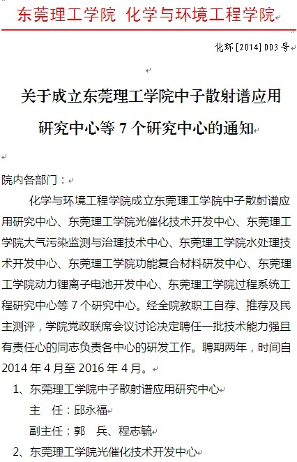 关于成立永利y23455中子散射谱应用 研究中心等7个研究中心的通知